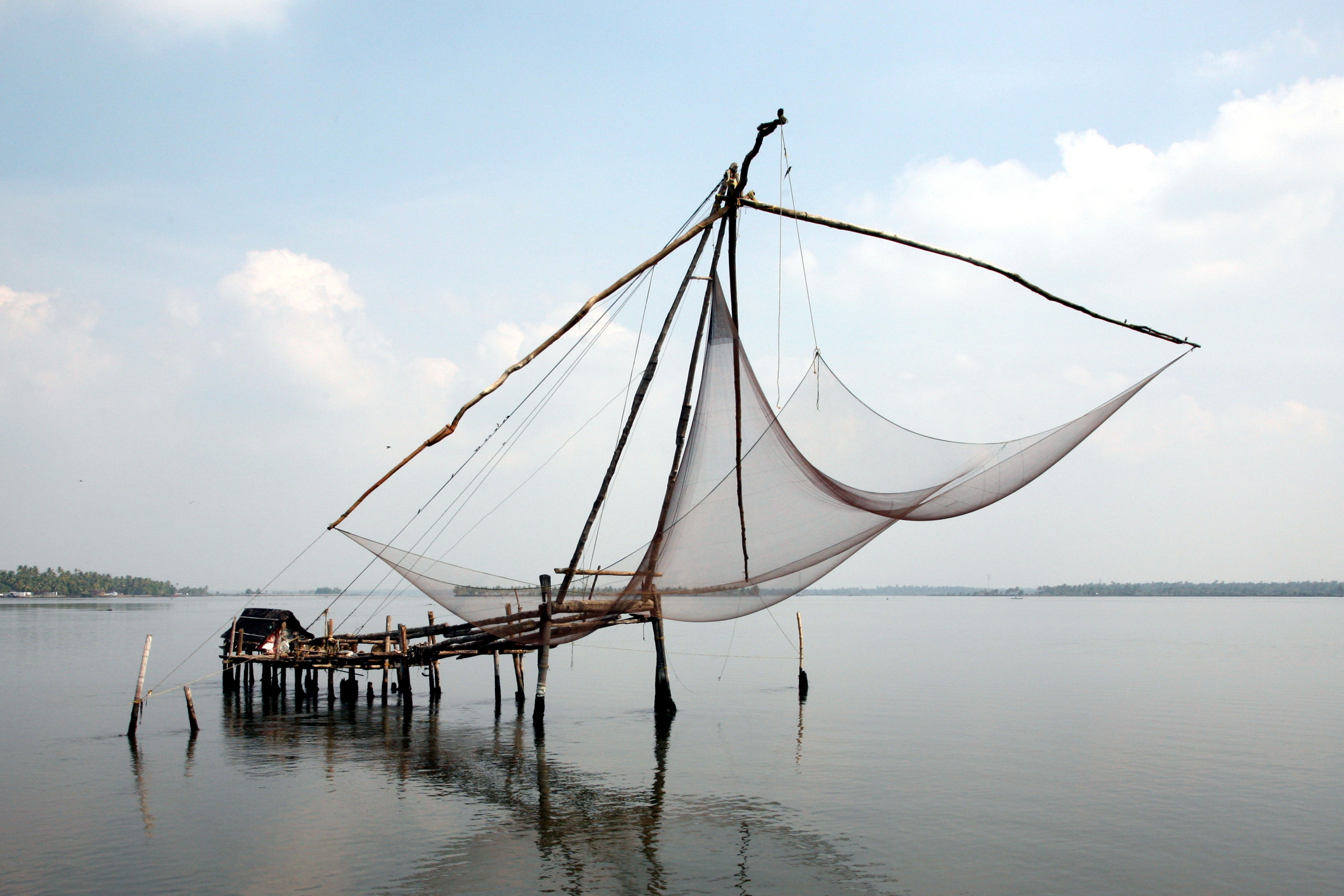 Made of teak wood and bamboo poles, the Chinese fishing nets are fixed installations that dip towards the water, resembling giant hammocks. They operate purely based on the principle of balance. It takes more than four fishermen to manage each net.