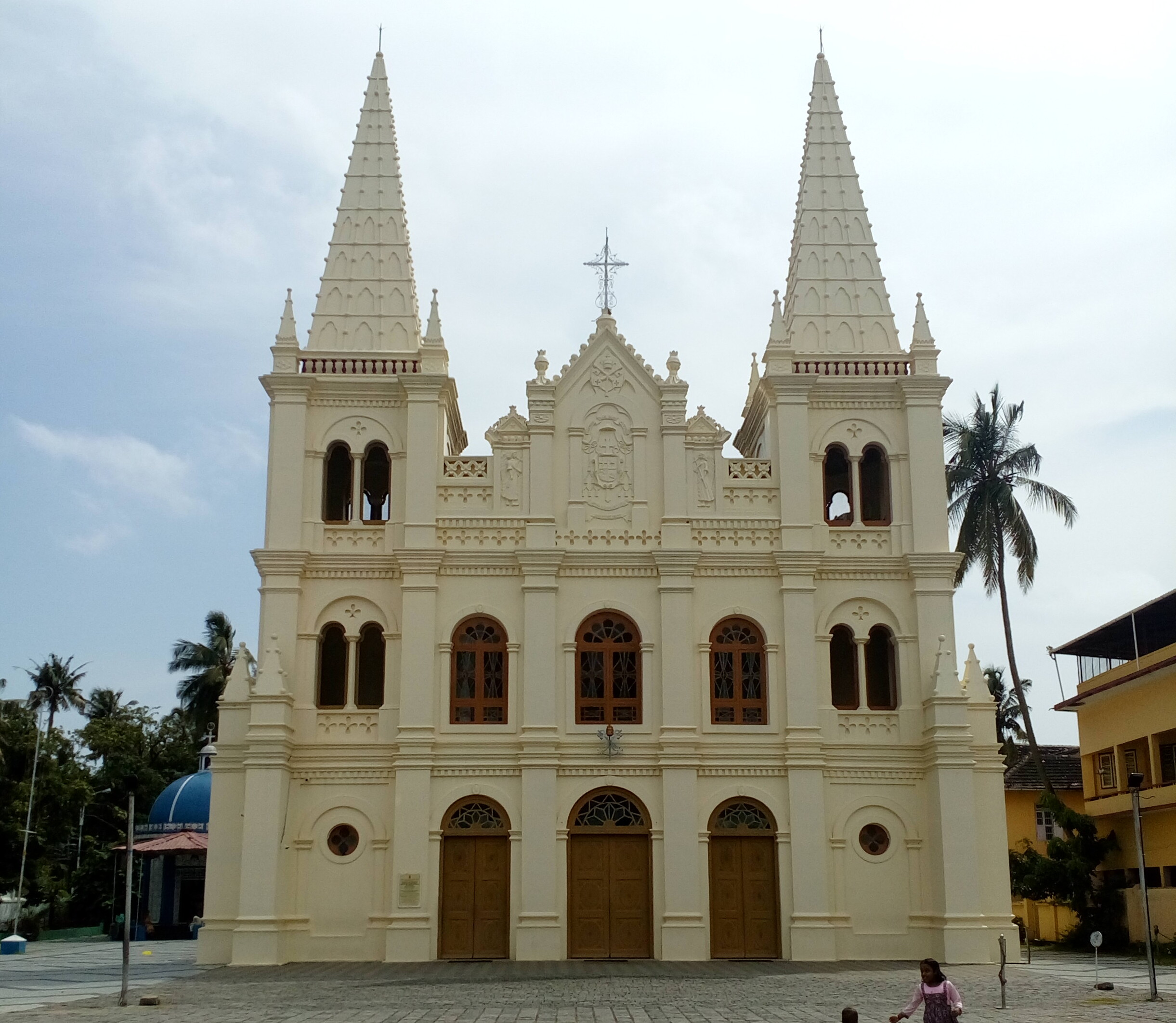 After Vasco da Gama discovered the sea route from Europe to India, two Portuguese noble explorers and navigators arrived and, with the permission of the Raja of Cochin, constructed a fort. Within this fort, they built a church with a wooden structure, originally dedicated to St. Bartholomew. In 1506, Francisco de Almeida, a Portuguese viceroy reconstructed the wooden church in stone and masonry.